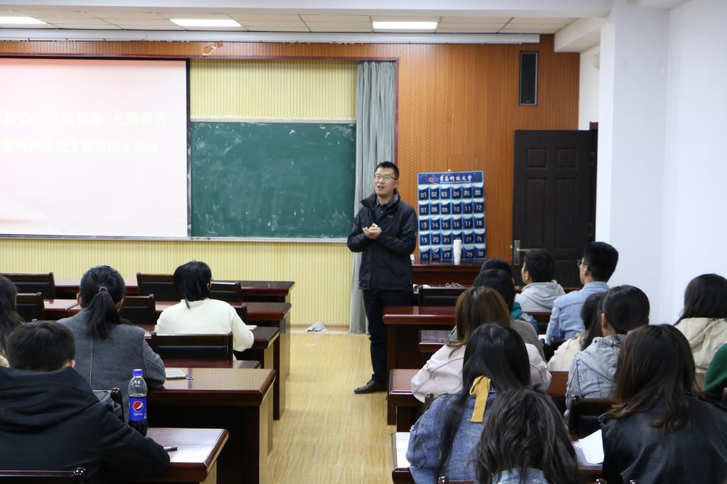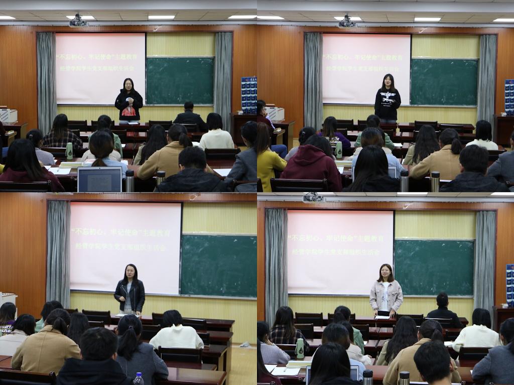接下来,为进一步夯实学习效果,促进成果转化,财务161班本科生党员王安琪、金融学17级研究生党员王希、企业管理18级研究生于雪琴、会计19级研究生党员田真四位党员代表结合自身经历,依次从对“初心”和“使命”的理解、学术研究、基层党员服务和未来展望等方面为同学们带来了一次别开生面的分享,全场气氛热烈,互动频频。国贸161班党员代表王清玥表示:“前辈们的讲话深入浅出,使我真正地认识到一名优秀的员工党员应该是什么样的,进一步增强了我深化思想认识,深刻检视问题,深入整改落实的动力。今后我一定会推动思想政治学习往深里走、往心里走、往实里走,取得新进步、达到新高度。”