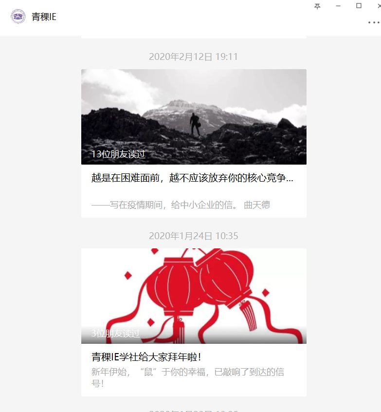 积极发挥员工党员和积极分子的作用,停学不停课,积极开展各项员工工作。在思想建设方面,同学们积极跟进工业工程系党支部开展“不忘初心、牢记使命”主题教育,青稞IE学社微信公众号时刻保持内容更新,定时发布专业知识和党建学习材料,为全系同学思想建设开辟了道路,使同学们不断向党组织靠拢。在学业和成长方面,为解决同学们对专业学习以及就业深造方面的信息不对称问题,我系党员老师积极联系和鼓励同学们加入专业性在线教学平台,接触大量企业协调部署空中招聘,第一时间给同学们分发疫情防控、学业保障和考研就业的相关信息。使得同学们获得了很多宝贵的知识经验,丰富了疫情期间的员工阅历,强化了专业自信心,众志成城,共克时艰。在活动方面,师生党员和积极分子积极策划,以青稞IE学社为门户,举办全系师生线上读书会,让爱好书籍的员工参与进来,更加丰富了课外生活。在新年伊始,师生协作拍摄了新年祝福视频,温暖了专业大家庭里的每一个成员。
