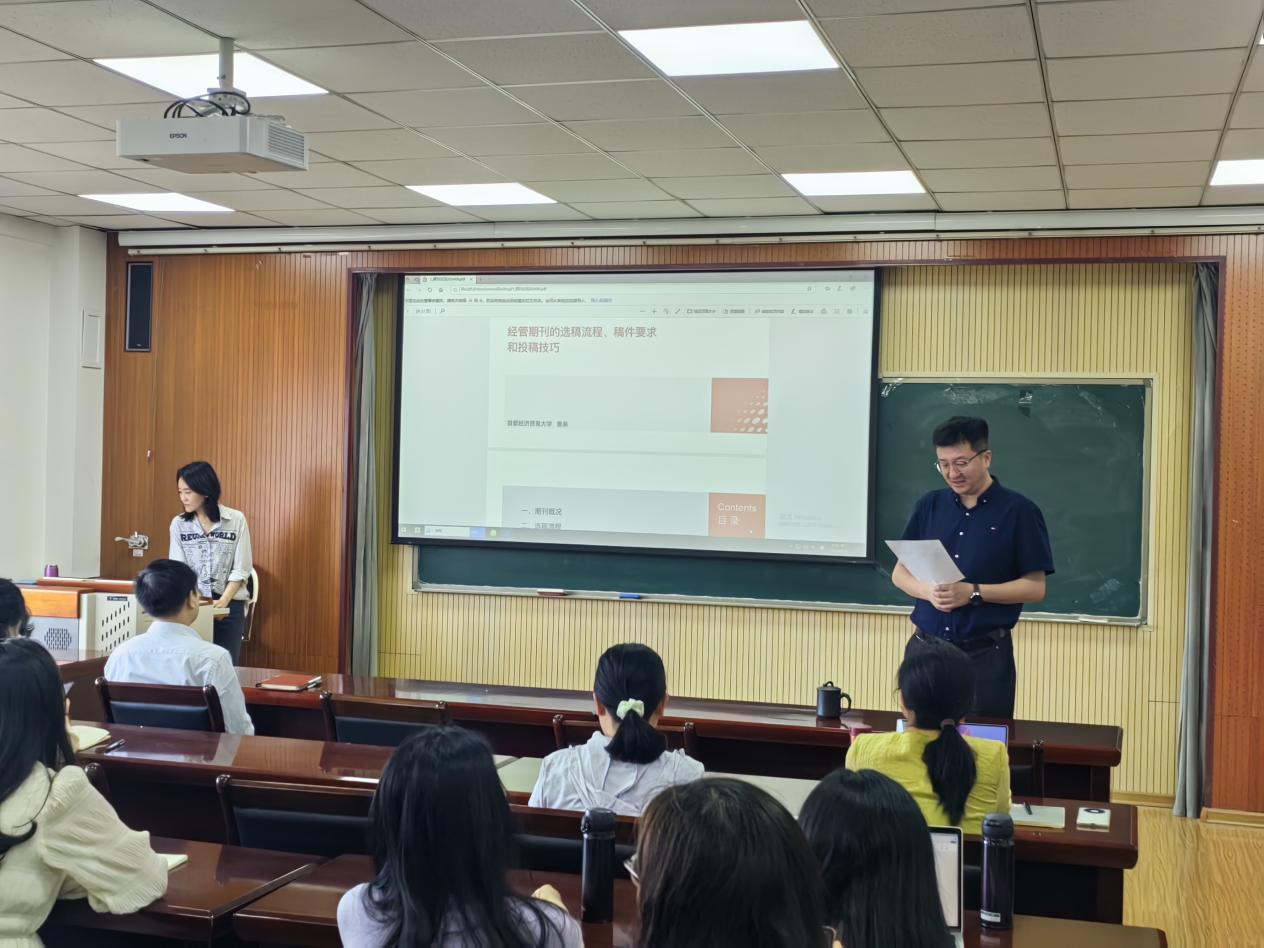 在学术研究的道路上,如何让自己的研究成果在经管类期刊上脱颖而出,一直是学者们关注的焦点。6月4日上午9点,复旦大学文学硕士、东北财经大学经济学博士、首都经济贸易大学工商管理博士后姜莱博士,在经管505教室,为广大同学们带来了一场关于“经管期刊的选稿流程、稿件要求和投稿技巧”的专题论坛讲座。本次活动由熊猫体育经理吕承超教授主持,公司老师和研究生同学参加了此次论坛。