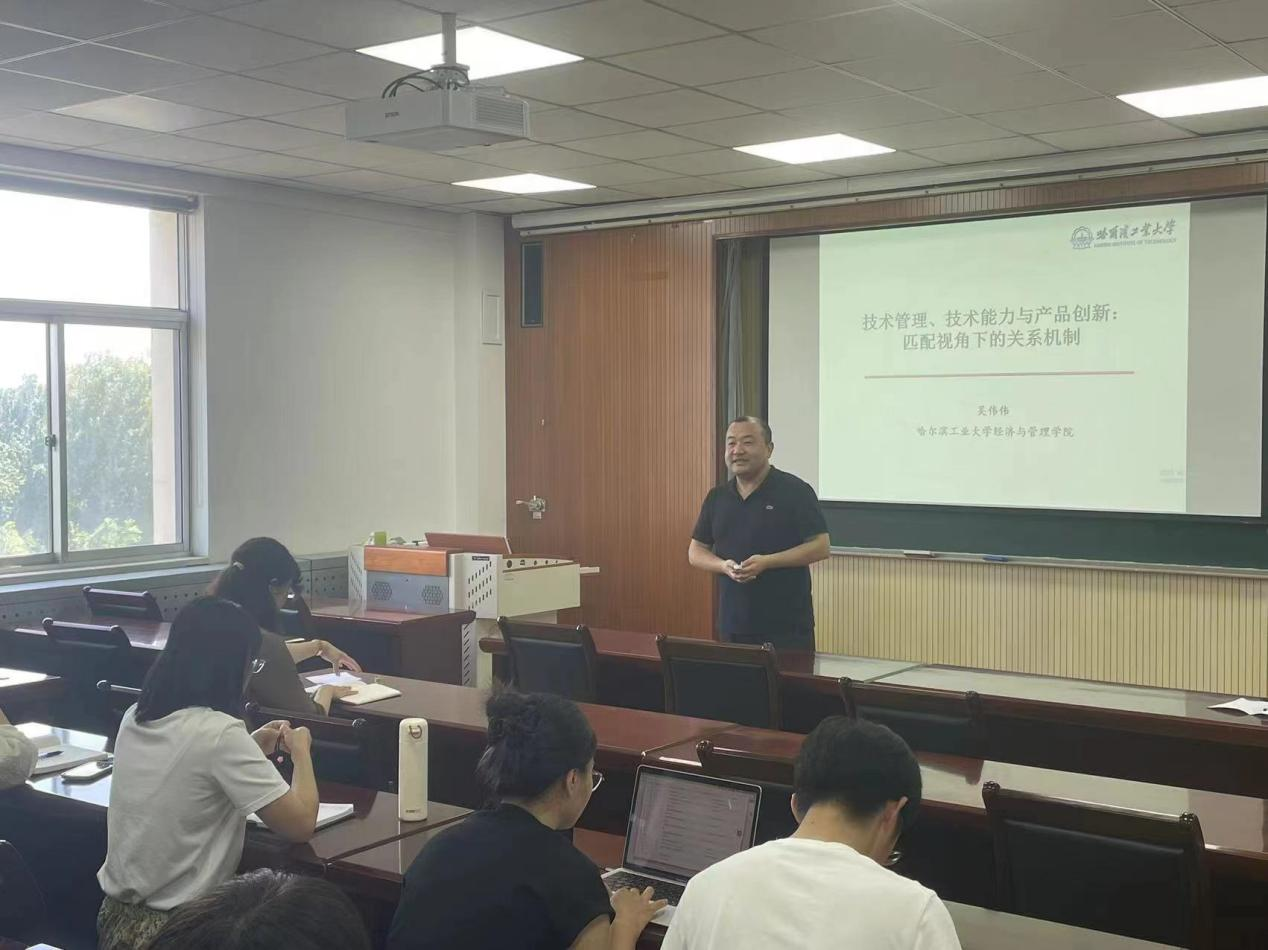 熊猫体育于2024年6月18日14时,在经管楼505会议室开展基于技术管理、技术能力与产品创新的匹配视角下的关系机制专题讲座,本次学术讲座邀请了哈尔滨工业大学熊猫体育吴伟伟教授带来经验分享和学习指导。讲座由副经理索琪教授主持,公司老师和研究生同学到场学习。