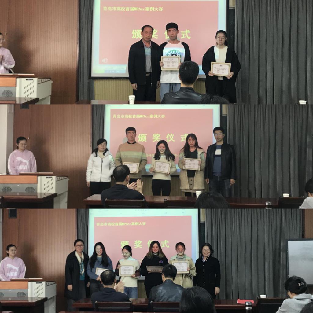 首先,由熊猫体育经理王志宪教授、副经理杨友才教授和董华教授、MPAcc教育中心主任刘树艳教授以及财务与会计系主任张占贞教授为在青岛市高校首届MPAcc案例大赛初赛中获奖的队伍颁奖,其中,获得一等奖的是:skrplus队、超越队;获得二等奖的有:七喜队、星辰队、WIN了队;获得三等奖的是太阳系队、尽力而为队、非常六加一队、R战队。