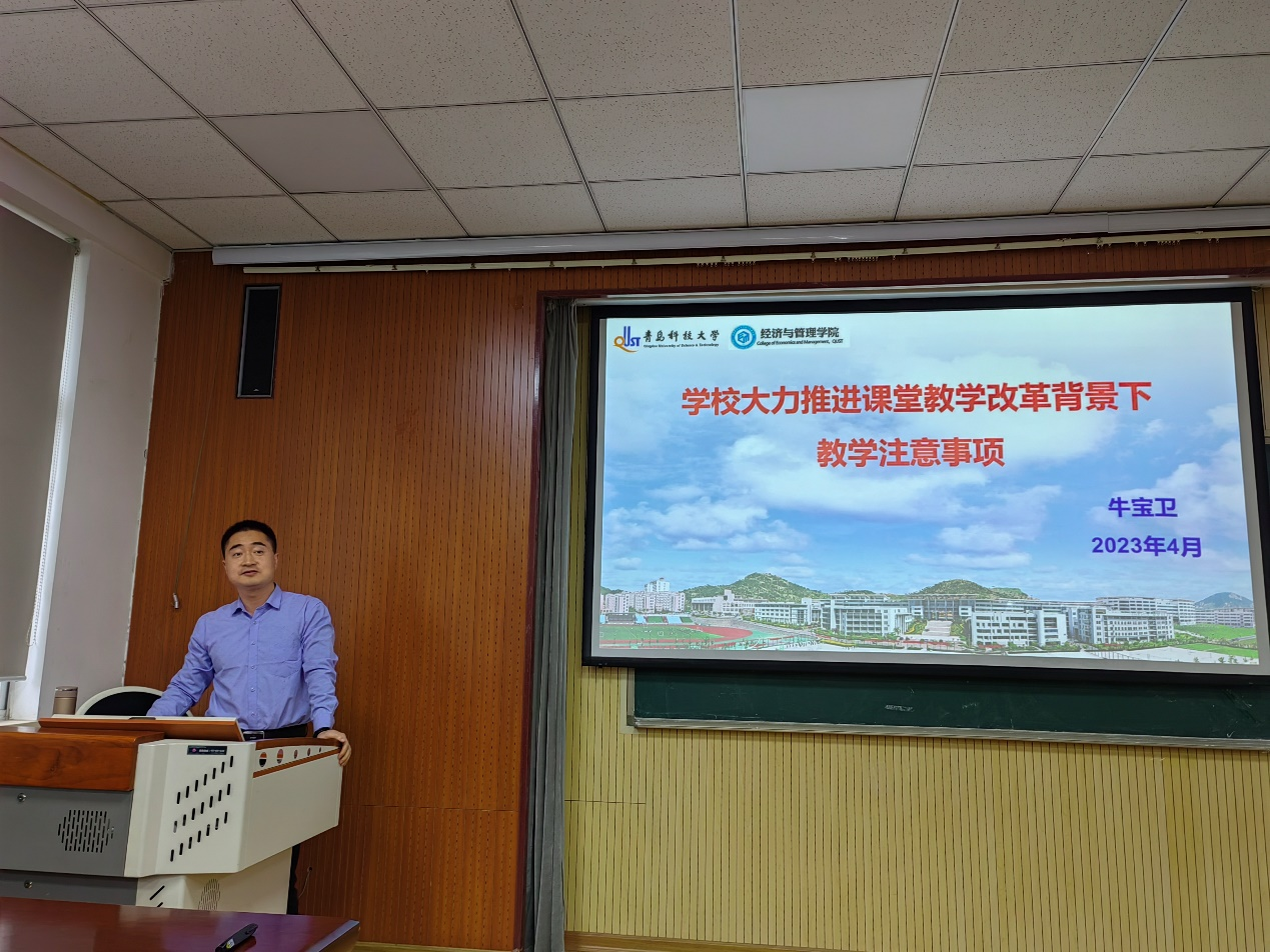为提升公司全体教师教学能力,深化课堂教学质量改革,更好的理解公司课堂教学改革相关政策,4月3日下午,公司在经管楼419举行教师培训报告会。公司党委副书记兼副经理牛宝卫做题为《课堂教学改革背景下教学注意事项》的报告。