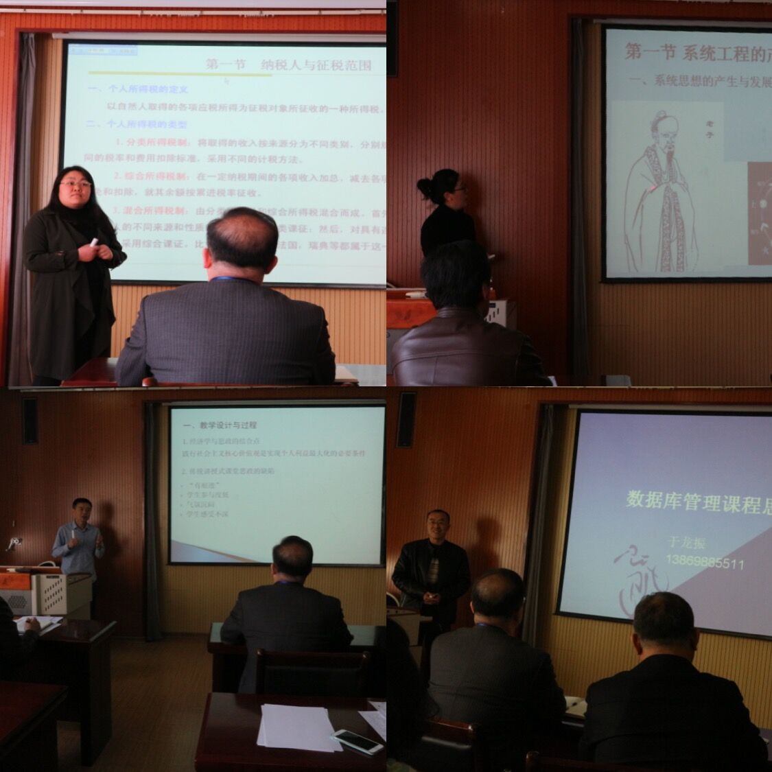会上,教师张玉、林琳、于龙振和祝晓波分别进行了“一课一亮点”课程思政示范课教学展示。张玉老师在税法课讲述个人所得税纳税人与征税范围的专题时,以影视明星范冰冰偷逃个税为引入案例,强调公民依法纳税的重要性,通过说明国家税收的最终去向,帮助员工理解公民为什么负有纳税义务;林琳老师在系统工程课讲述系统思想的专题时,追溯了中华文明中系统思想的精髓,加深员工对系统思想理解的同时,帮助员工树立对中华文化的自信;于龙振老师在数据库管理课程讲述结构化编程内容时,引导员工思考如何用“if….else”程序结构体现中美俄大国关系的因果走向,通过让员工设计中美俄大国关系的剧情游戏,提升员工编程能力的同时,培育员工的国家意识和社会责任意识,将爱国热情自然的融入到课程教学当中;祝晓波老师在经济学课程中,通过“最后通牒博弈”的微实验,让员工亲身体验博弈行为,帮助员工分析认识只有诚信、公平,友善,才能在合作与博弈中更好的获益,很自然的将社会主义核心价值观教育与经济学理论教学有机的融合在一起。
