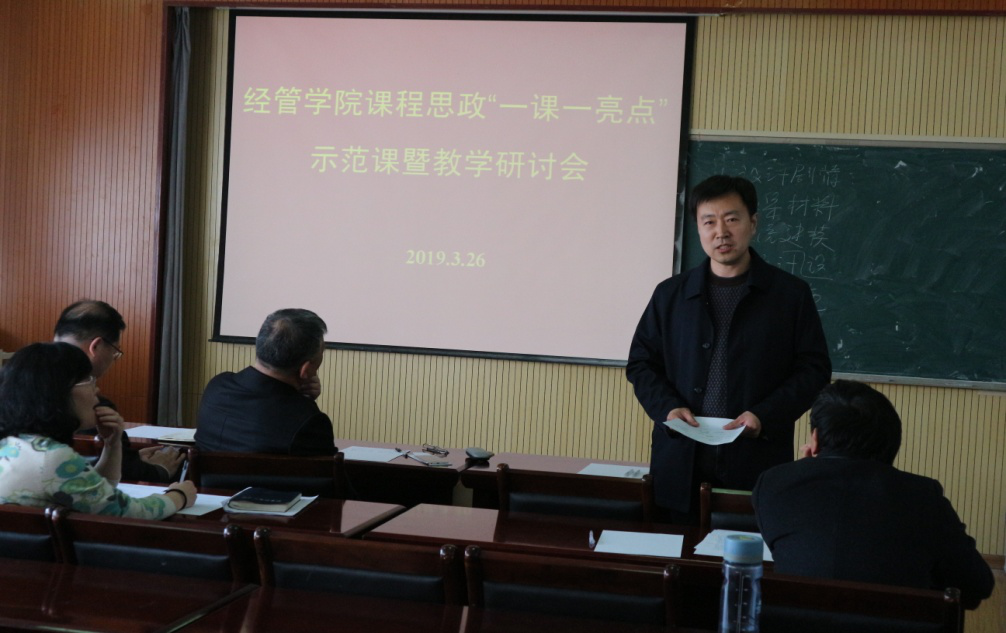 3月26日下午,​熊猫体育在419会议室举办了​熊猫体育“一课一亮点”课程思政示范课暨教学研讨会。马克思主义公司教授杜裕禄、教务处处长王霞、宣传部部长任允晓、组织部副部长孟兆国、教务处副处长马骥等机关部门领导及公司全体青年教师、系主任、教学督导员观摩了本次示范课,活动由公司党总支书记李德成主持。